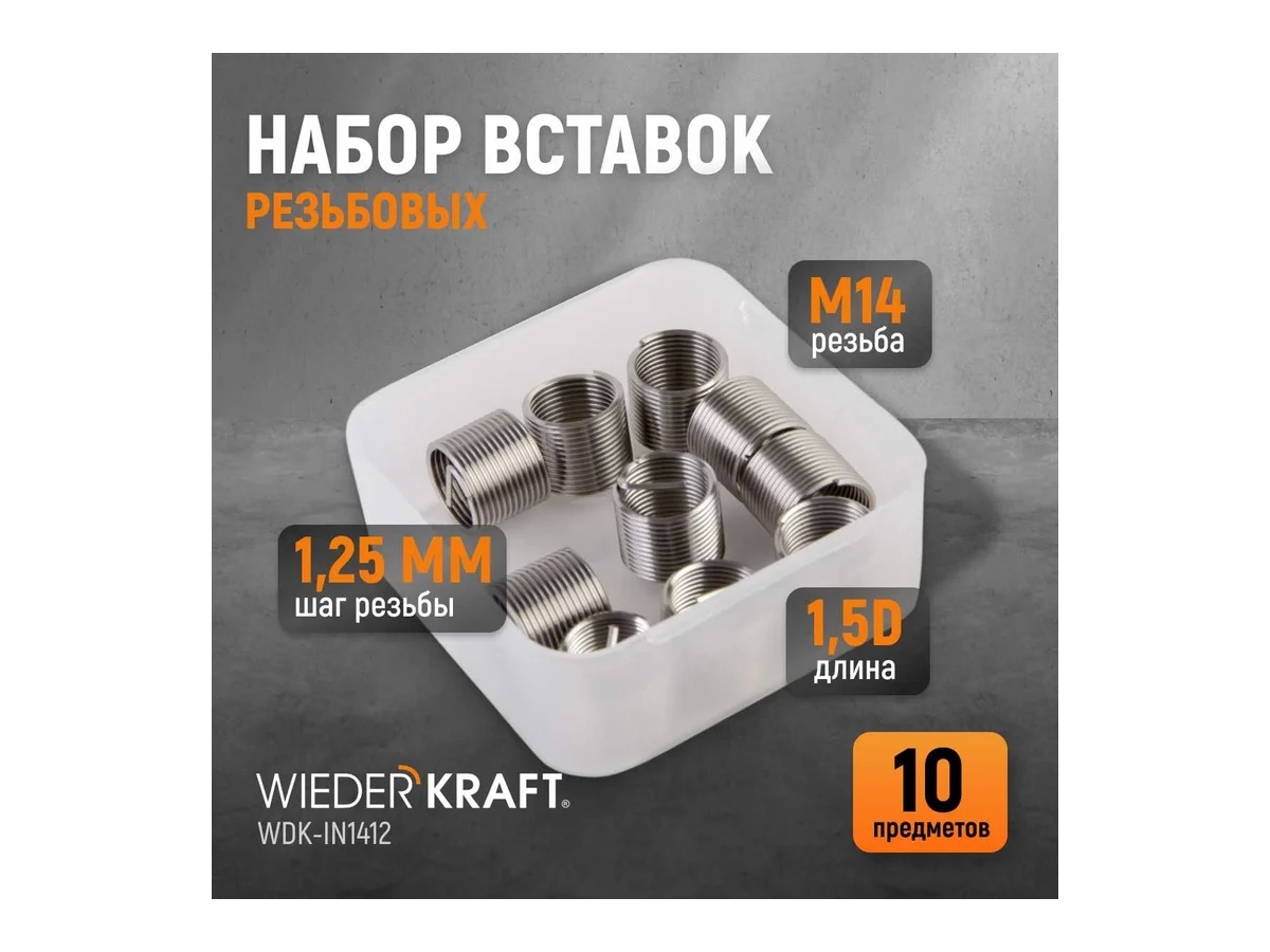 Резьбовые вставки WIEDERKRAFT M14X1.25, 10 предметов WDK-IN1412: