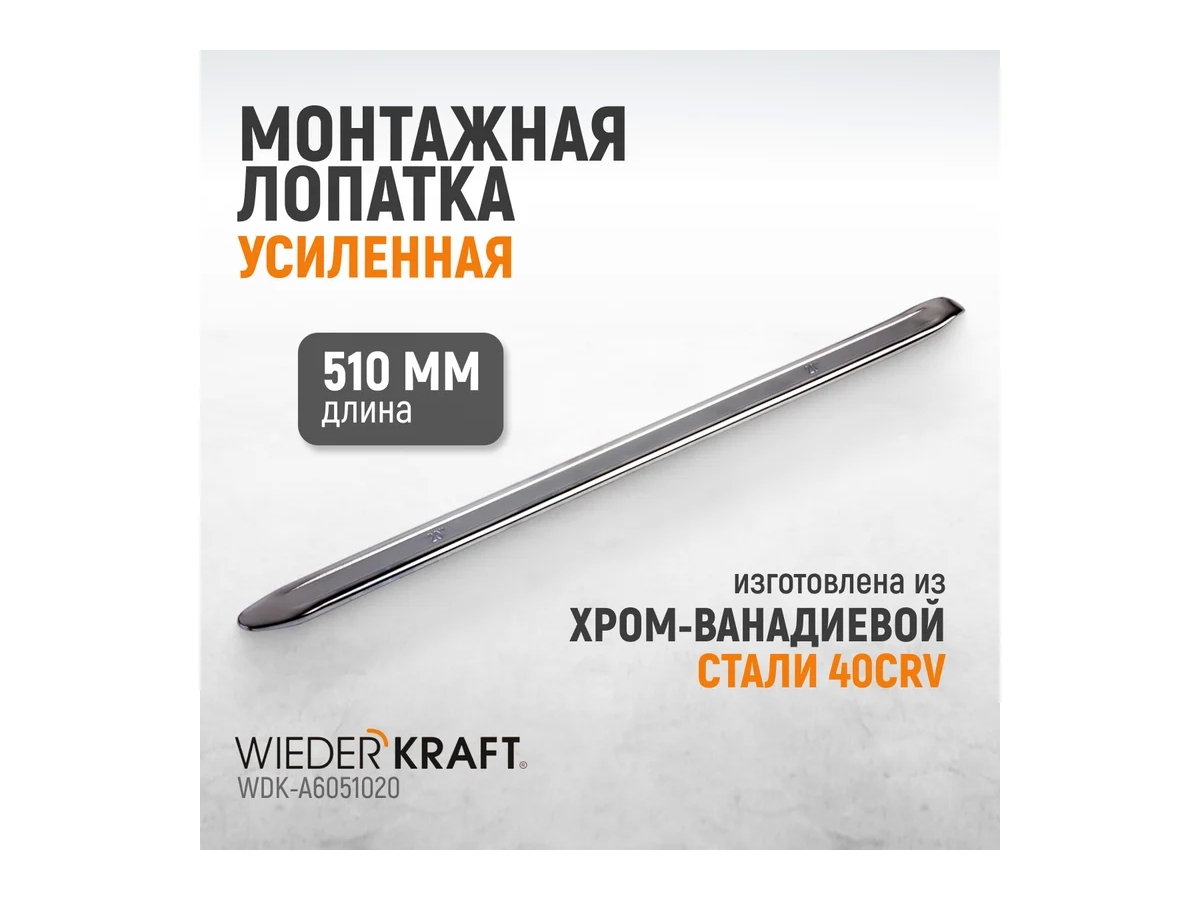 Монтажная лопатка (монтировка) WDK-A6051020 применяется для монтажа автомобильных покрышек. Удобна в использовании за счет небольшого веса и высокой прочности, которая обеспечивается ребрами жесткости. Позволяет без труда снимать автомобильные шины с дисков, демонтировать части конструкции, снимать доски, металл или пластиковые панели на длинном крепеже.