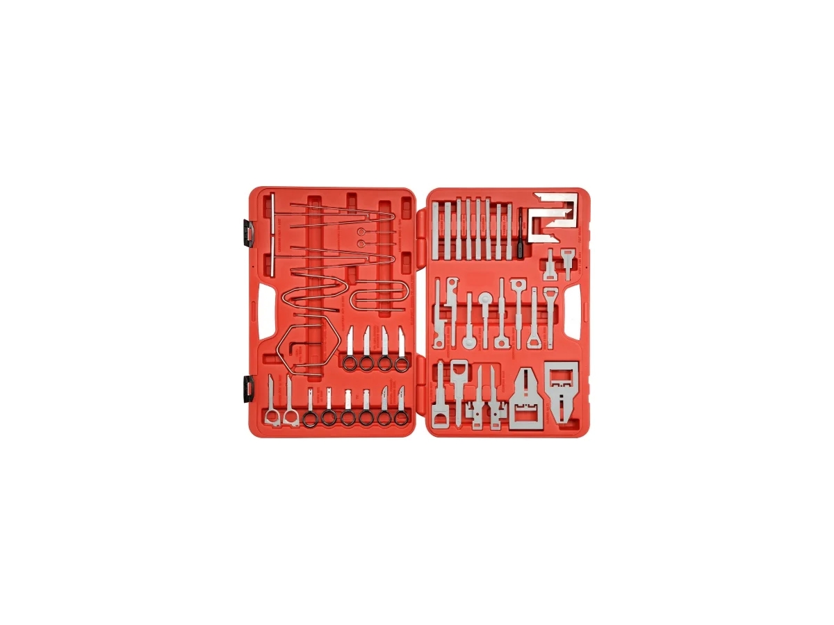 Профессиональный набор YT-0838 для демонтажа мультимедийного и аудио оборудования из торпедо автомобиля. Пятьдесят два съемника расположены в удобном и долговечном пластиковом кейсе с защелками. Каждый инструмент находится на своем уникальном месте. Возле посадочного места съемника в кейсе указаны марки автомобилей, у которых данным съемником демонтируется штатное головное устройство (штатная магнитола) или марка универсальной магнитолы, которая может устанавливаться в разные автомобили со стандартными посадочными местами DIN.Подходит для работ как с небольшими магнитолами 1DIN, так и с магнитолами большего размера 2DIN и штатными головными устройствами. Все, что требуется для быстрого и аккуратного извлечения аудиосистемы, это установить съемники в соответствующие пазы на фронтальной части устройства (как указано в инструкции и на обороте упаковки), нажать на них до упора или до щелчка и потянуть на себя съемники уже вместе с аудиосистемой. Набор значительно ускорит работы и поможет сохранить дорогостоящее оборудование в хорошем состоянии.