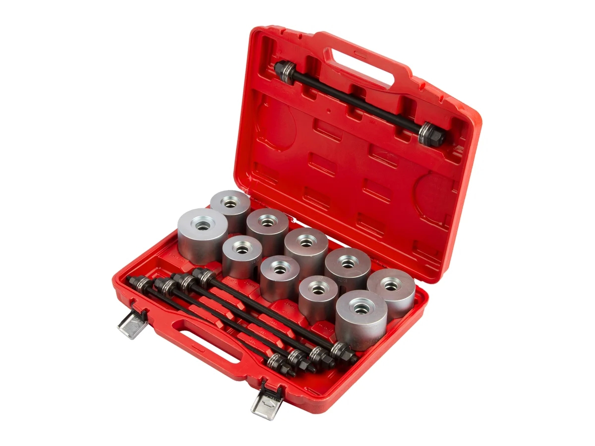 Съёмник сайлентблоков WIEDERKRAFT набор оправок, 24 предмета WDK-214920 - универсальный набор оправок для запрессовки и выпрессовки сайлентблоков, различных подшипников и втулок.