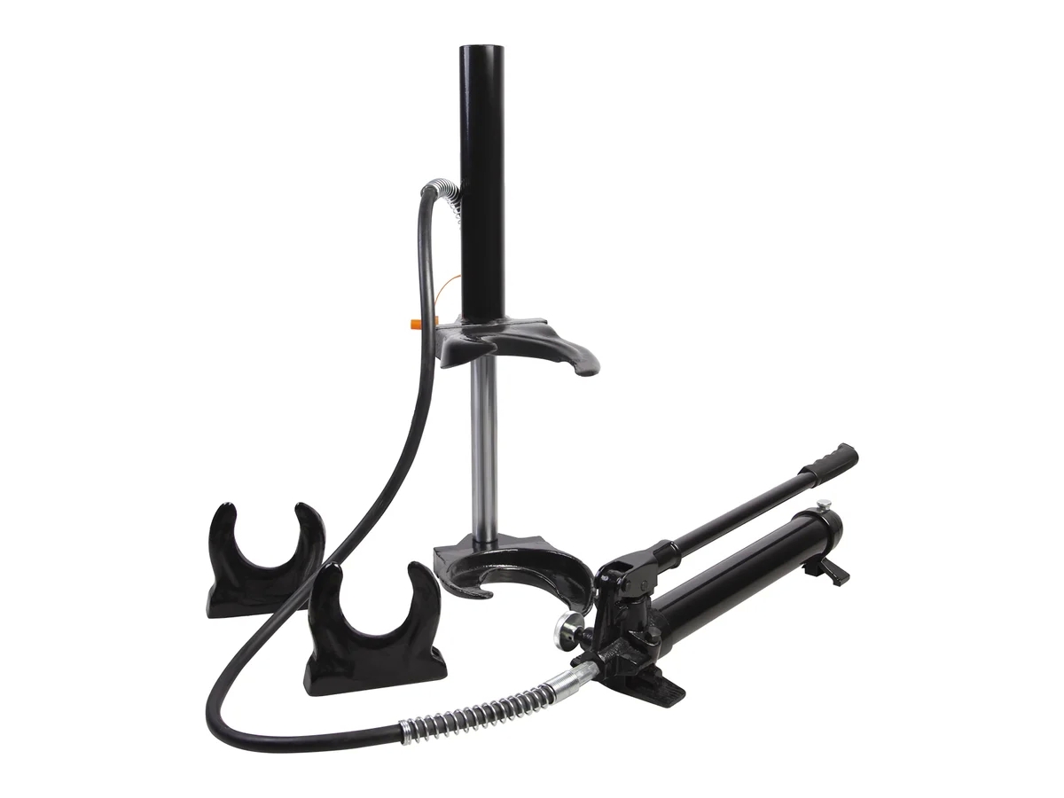 Гидравлическая стяжка пружин WIEDERKRAFT WDK-83211 предназначена для быстрой и безопасной стяжки пружин подвески автомобиля при обслуживании и ремонте. Конструкция выполнена из прочных материалов, обеспечивая надежность при интенсивной эксплуатации. Гидравлический насос, входящий в комплект, подключается к цилиндру с помощью шланга и позволяет выполнять работы практически без усилий. Съемник оснащен сменными зажимными лапами двух типоразмеров для пружин разного диаметра.