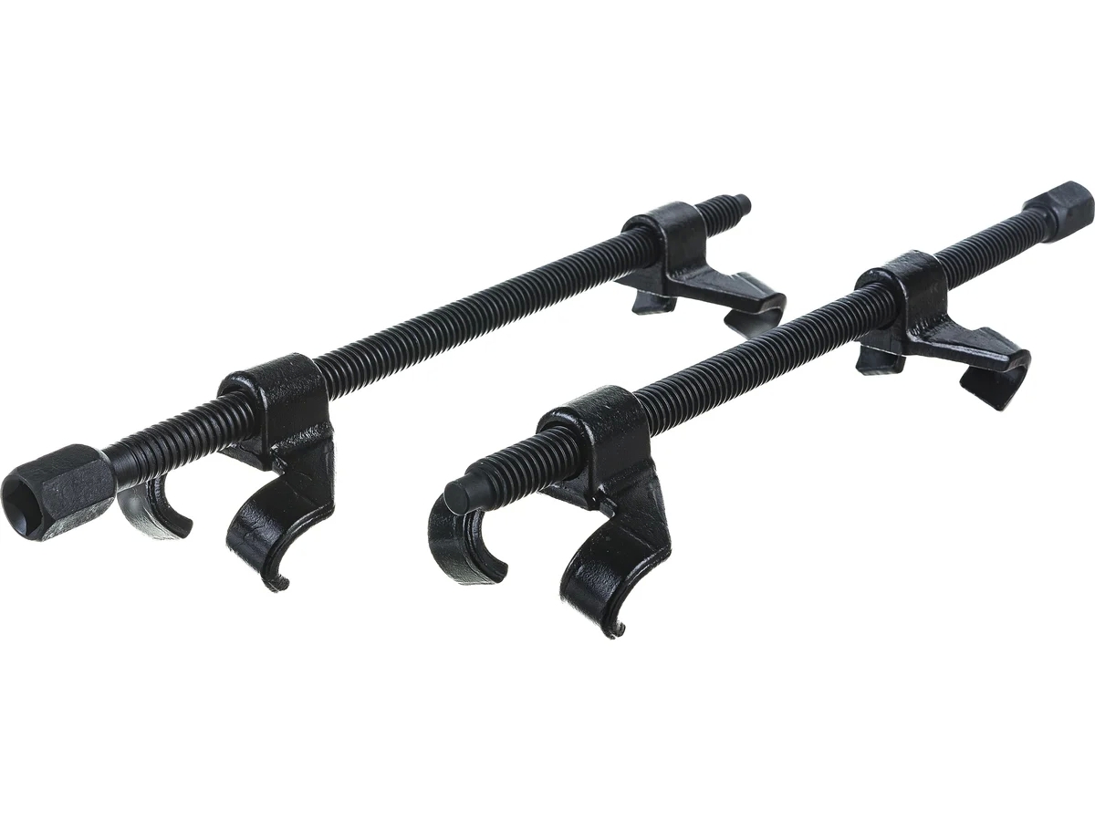 Съемник пружин YATO 82x370 мм, 2 шт. YT-2544 применяется для фиксации пружин подвески при обслуживании автомобиля. Приспособление изготовлено из стали, прошедшей воронение, что эффективно защищает инструмент от коррозии. Съемник имеет усиленную конструкцию, оснащен двойными крюками, позволяющими надежно фиксировать пружину во время ее снятия.