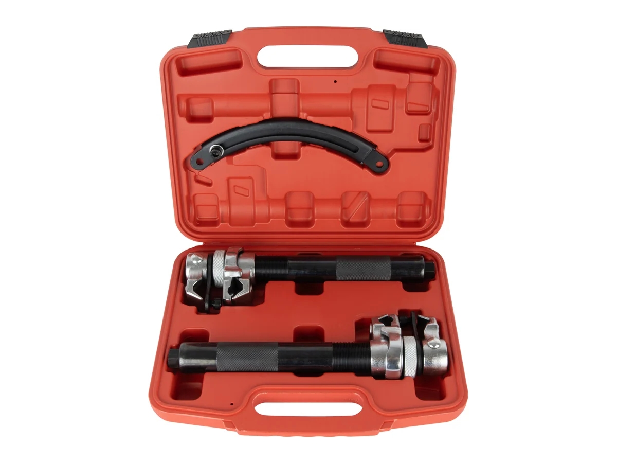 Стяжка пружин с предохранительной дугой WIEDERKRAFT WDK-214026B предназначен для безопасного сжатия и фиксации пружин при замене амортизационных стоек и других работах с подвеской автомобиля. Инструмент обеспечивает точное и контролируемое воздействие на пружину, предотвращая соскальзывание и деформацию.