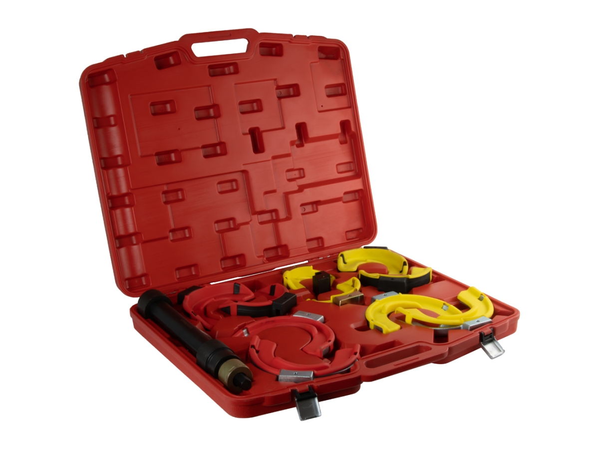 Универсальный съемник пружин с расширенной комплектацией WIEDERKRAFT WDK-214029A используется для ремонта подвески типа МакФерсон на передней и задней осях многих типов автомобилей.