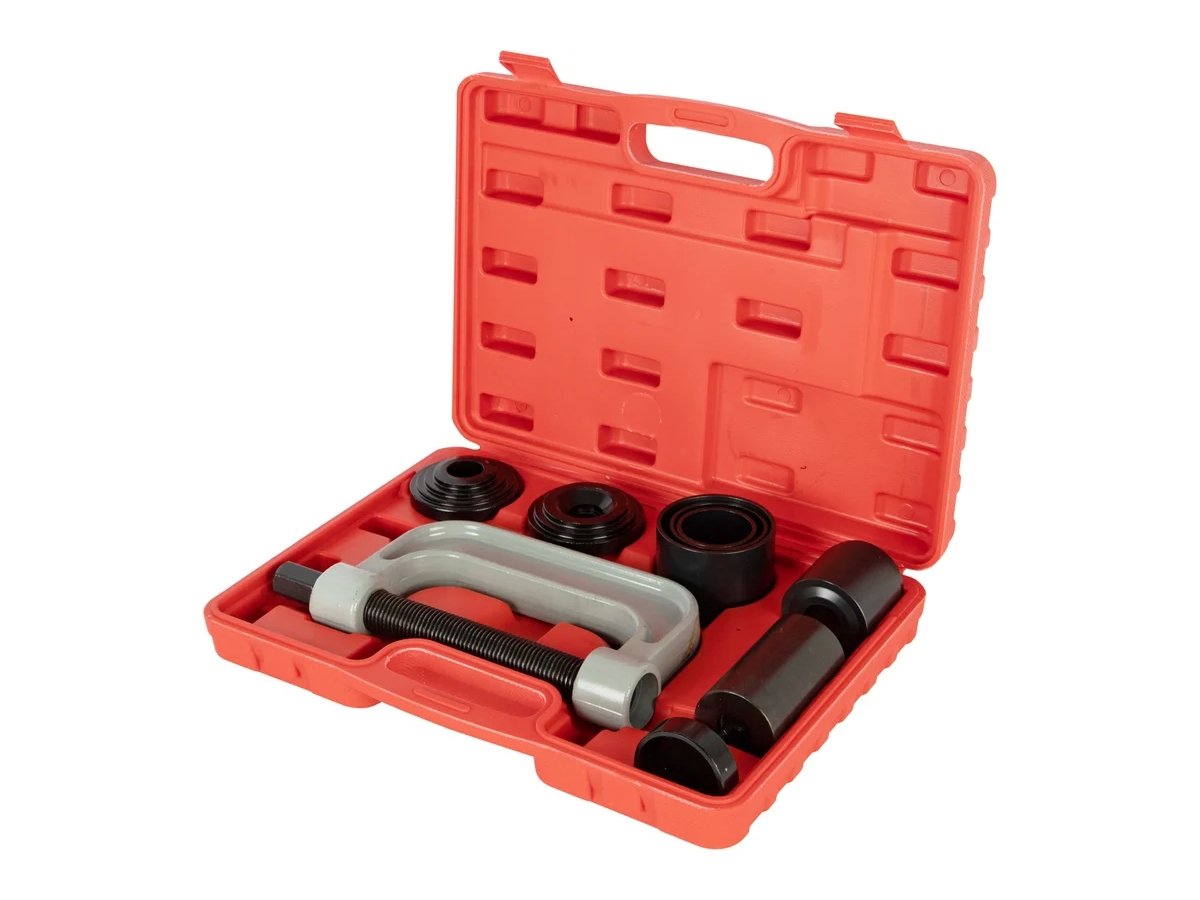 Съемник шаровых опор WIEDERKRAFT набор 4 в 1 WDK-214670 предназначен для демонтажа шаровых опор, и сайлент блоков подвески автомобилей, в том числе полноприводных и легких грузовиков. Позволяет демонтировать запрессованные шаровые опоры без демонтажа рычага.