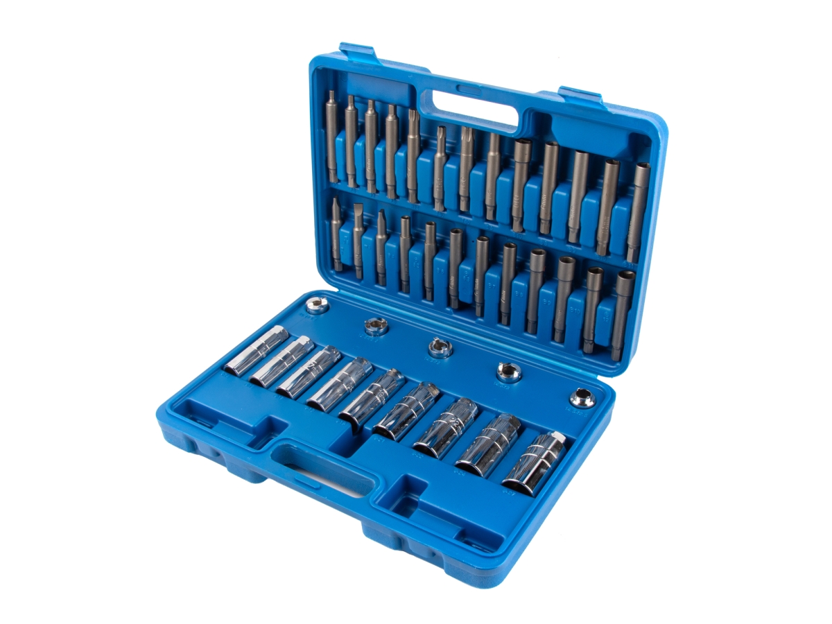 Специализированные биты с шестигранным приводом на 10 мм, изготовленные из высококачественной хромистой легированной стали. Поставляются в кейсе с таблицей применения.