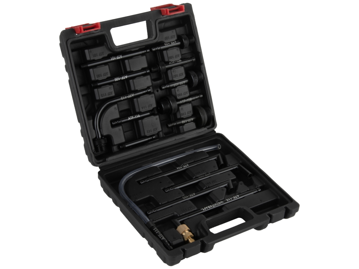 Набор адаптеров для замены трансмиссионного масла состоит из 15 предметов, сервисный адаптер для трансмиссии CVT, ATF адаптеры, масляный инструмент для перезаправки трансмиссии значительно упрощает рабочий процесс. За счет широкого разнообразия адаптеров набор подойдет для работы с большинством автомобилей оснащенных АКПП.