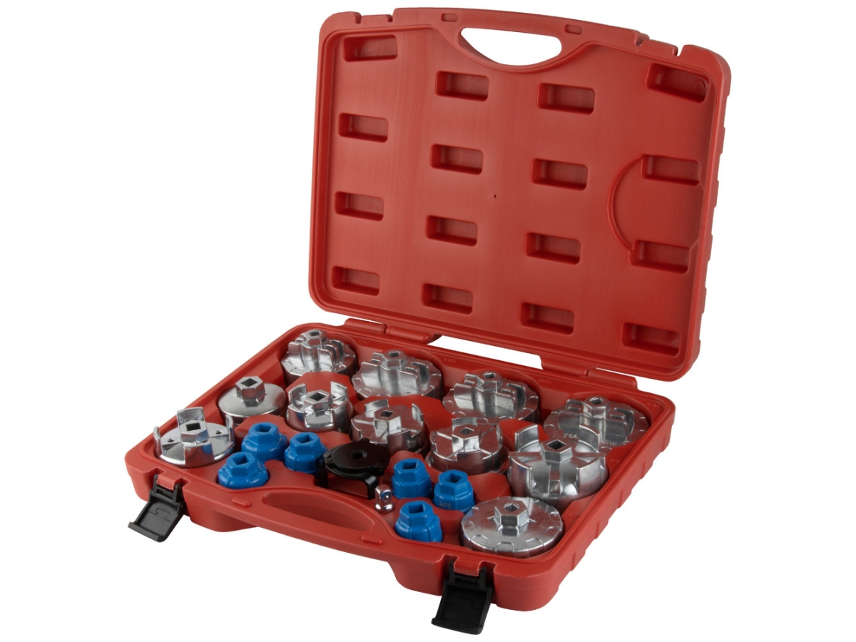 Набор съемников WDK-65341 предназначен для демонтажа и установки масляных и топливных фильтров на автомобилях европейского, японского и американского производства. Комплект включает 19 инструментов различного типа, охватывающих широкий диапазон диаметров — от 24 до 100,5 мм.
