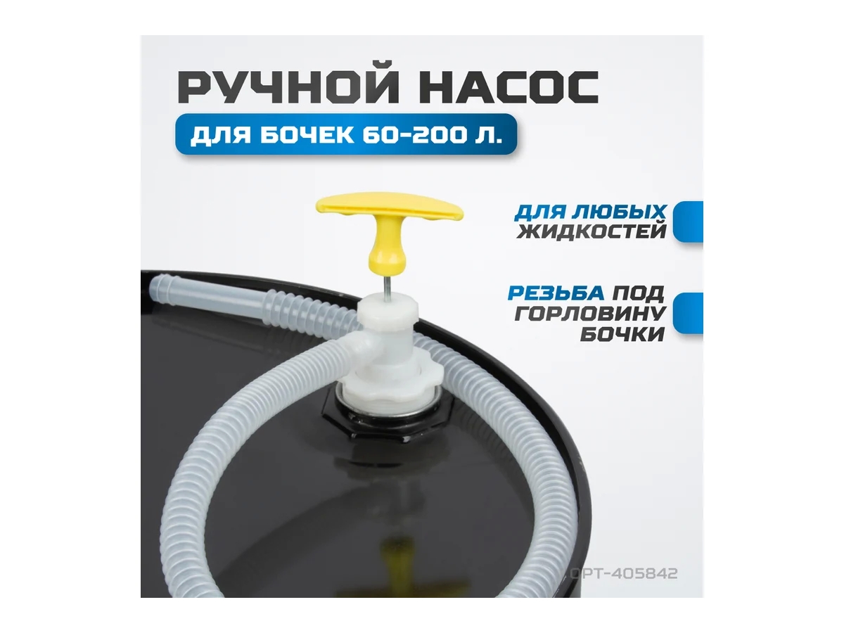 Ручной насос для перекачки жидкостей Optimus OPT-405842 предназначен для перекачки жидкостей из бочек 60-200 литров. Резьба под горловину бочки на корпусе насоса обеспечивает надежную фиксацию и герметичность. Подходит для перекачки: воды, дизельного топлива, керосина, масла, сольвента, очищающих растворов.