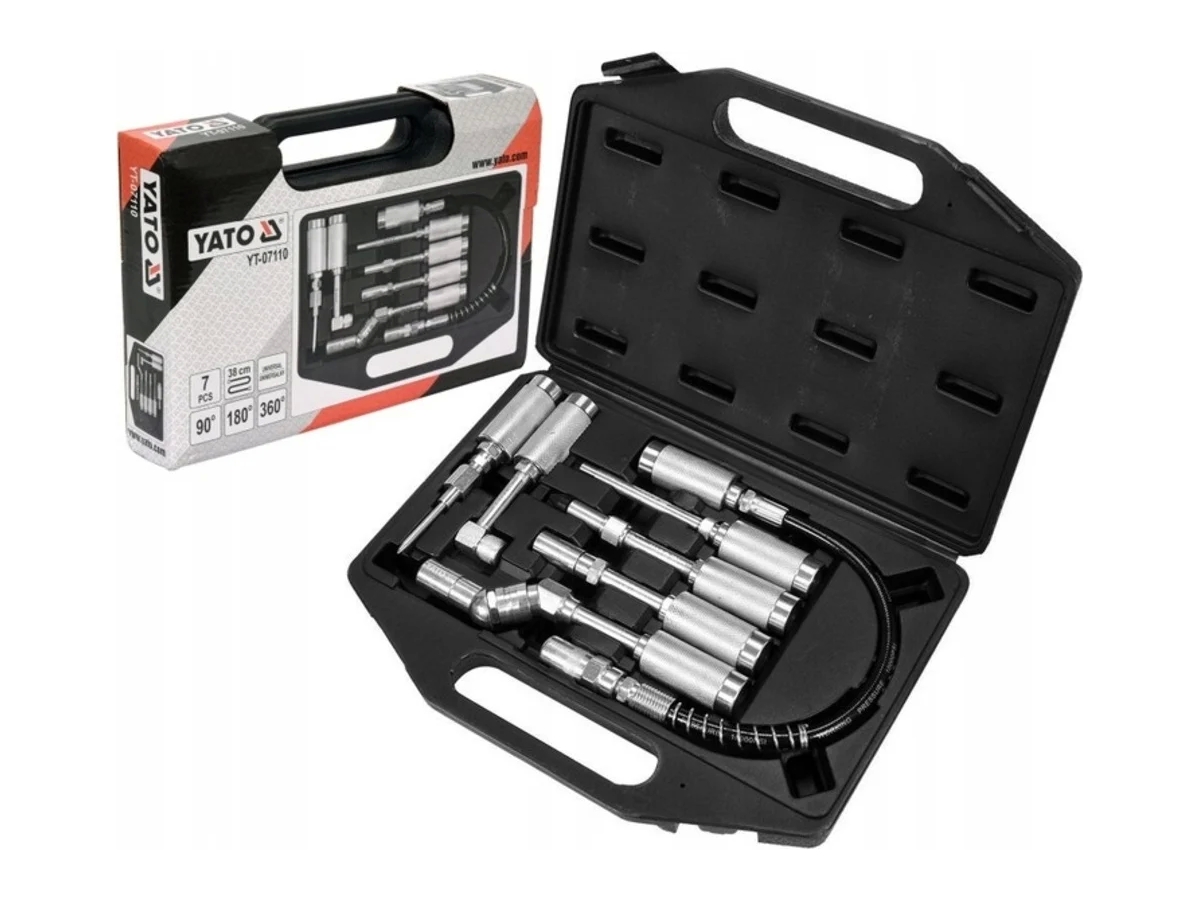 Набор наконечников для маслёнок YATO 7 предметов в пластиковом кейсе YT-07110 изготовлен из прочных материалов и с быстроразъемным соединением в комплекте: