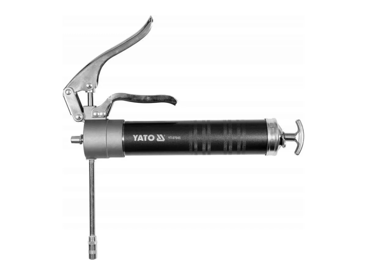 Профессиональный ручной шприц для смазки YATO с усиленной конструкцией и высокой силой нагнетания . Для смазки машин и устройств, особенно рекомендуется для больших строительных и сельскохозяйственных машин.