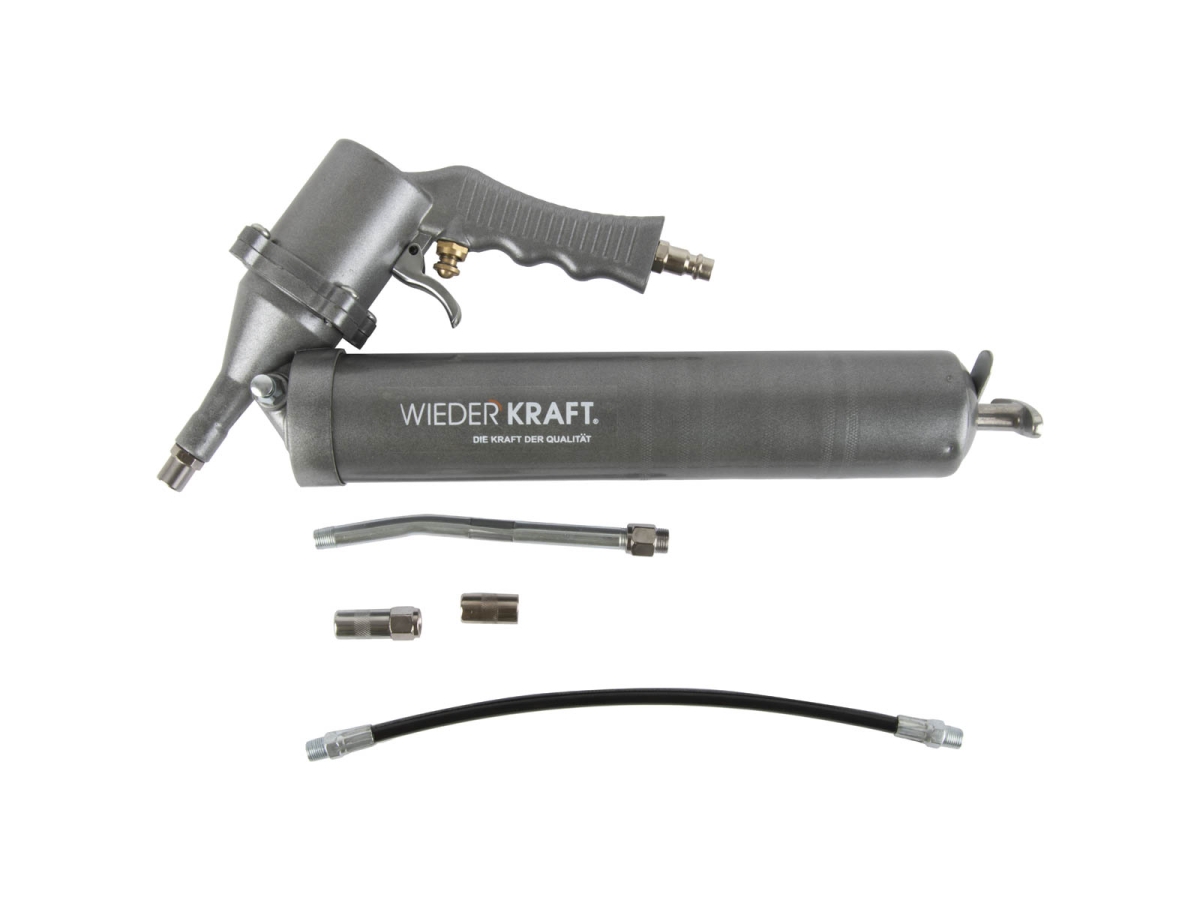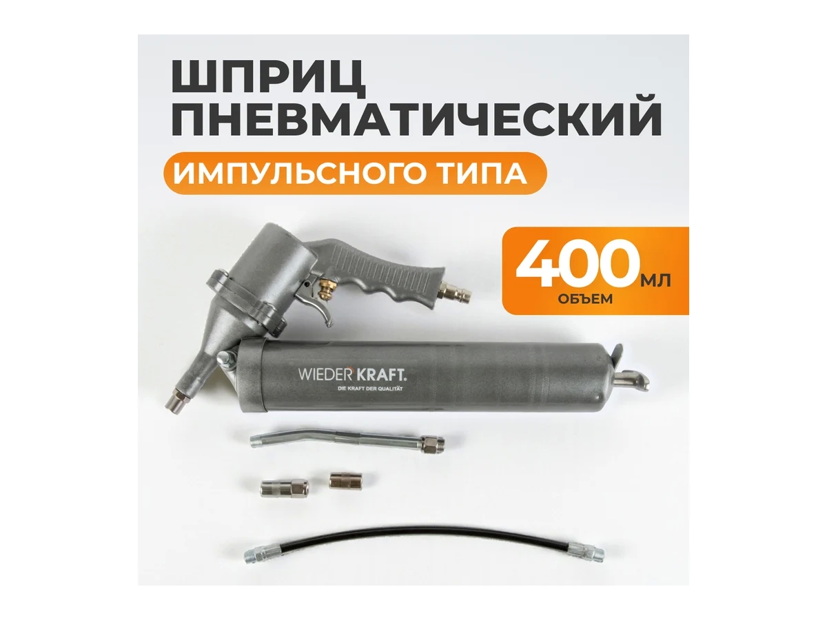 Пневматический шприц WIEDERKRAFT WDK-65154 предназначен для подачи консистентных смазок в узлы и агрегаты автомобилей, спецтехники и промышленного оборудования. Инструмент подключается к пневмосети и обеспечивает равномерную, импульсную подачу смазки под давлением, что значительно ускоряет и облегчает процесс обслуживания по сравнению с ручными аналогами.