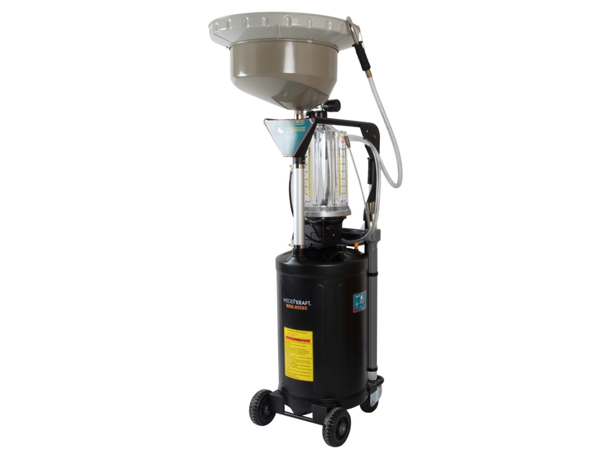 Мобильная установка WIEDERKRAFT WDK-89580 75л с предкамерой, увеличенной воронкой, пневматическим регулированием высоты предназначена для удаления отработанного масла и технических жидкостей из двигателей, КПП и дифференциалов транспортных средств. Оснащена вакуумной откачкой и свободным сливом, что обеспечивает удобство работы с любыми типами автотранспорта.