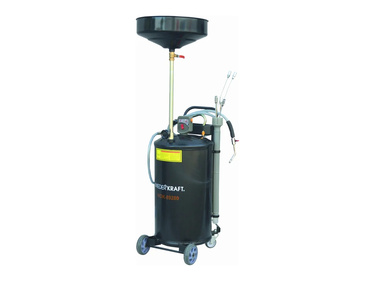 Маслосменная установка с воронкой и набором щупов WIEDERKRAFT WDK-89280 предназначена для сбора отработанного масла при помощи вентури-вакуумной вытяжной системы с двигателей, коробок передач и т.п. или откачки масла через отверстие для щупа. Воронка объемом 20 литров регулируется по высоте. Через воронку отработанное масло попадает в сливной бачок, объем которого составляет 70 литров.