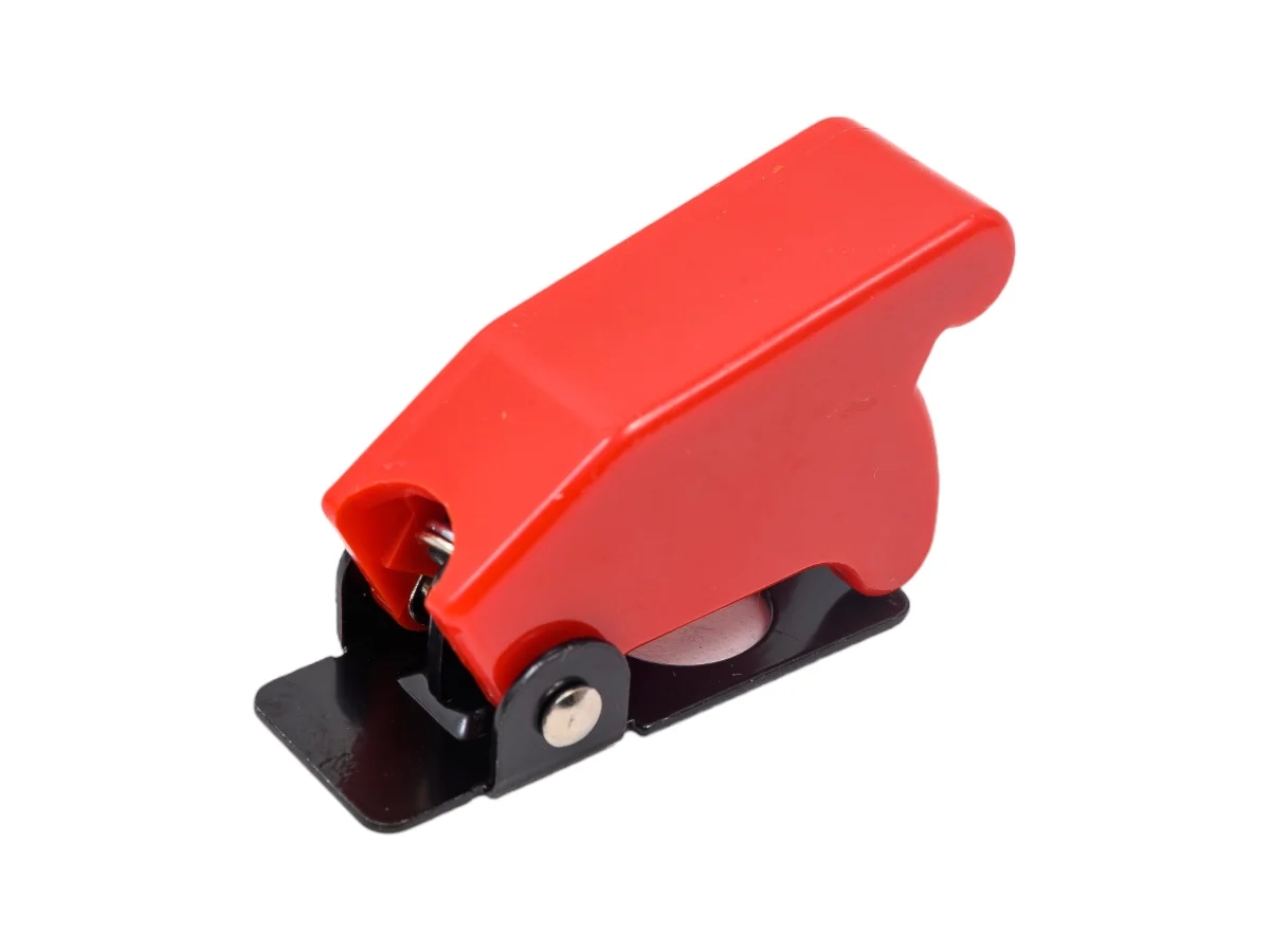 Защита тумблера состоит из двух основных частей, соединенных пружинным механизмом: металлической пластины с круглым отверстием диаметром 12 мм для установки на переключатель и пластмассовой крышки. Пружинный механизм удерживает крышку в закрытом, либо открытом положении. Для переключения в открытое положение требуется приложить некоторые усилия. Защитная крышка имеет фиксацию коммутационных положений.