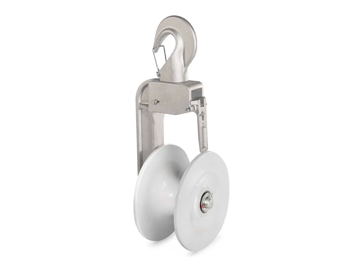 - Поворотный крюк, на котором установлена рамка монтажного ролика позволяет проходить угловые участки кабельных трасс с углом поворота до 30°