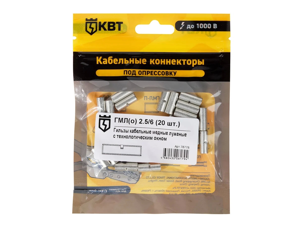 Соединение встык без осевой нагрузки проводов и кабелей с медными жилами сечениями от 2.5 до 6 мм²