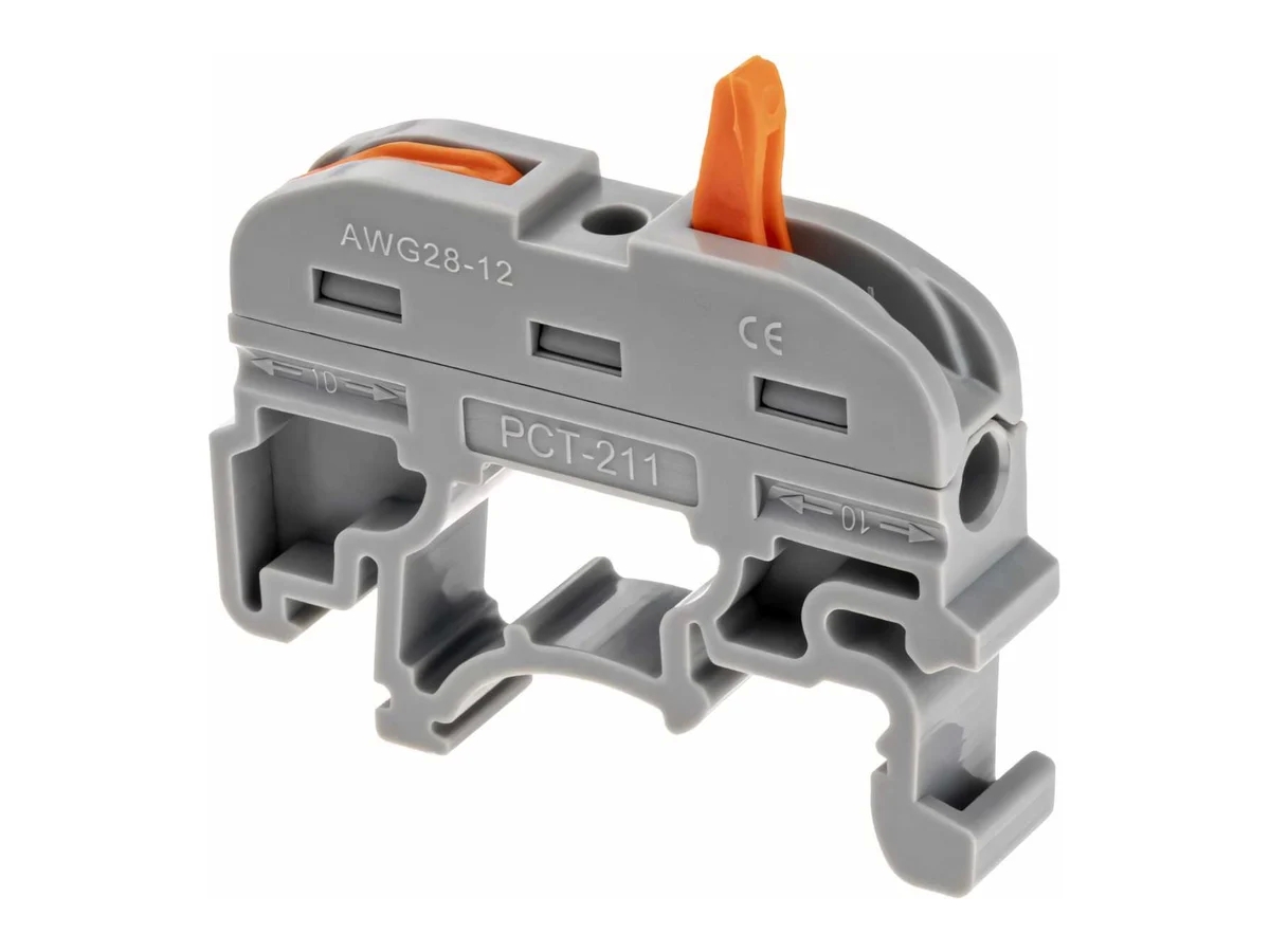 Проходная клемма КВТ СМК 222-2411 на DIN-рейку 87640 для соединения любых типов медных проводников: моножильных и многожильных тонкопроволочных с креплением на DIN-рейку.