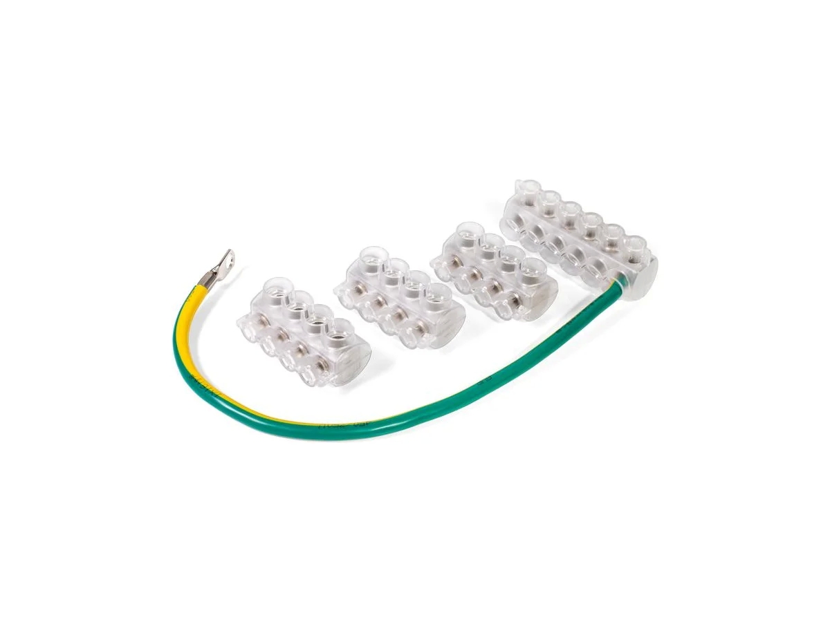 - Материал: контактная часть (корпус клеммника) - алюминиевый сплав, контактная часть (прижимные болты) – анодированная сталь, изолирующий корпус - поликарбонат.