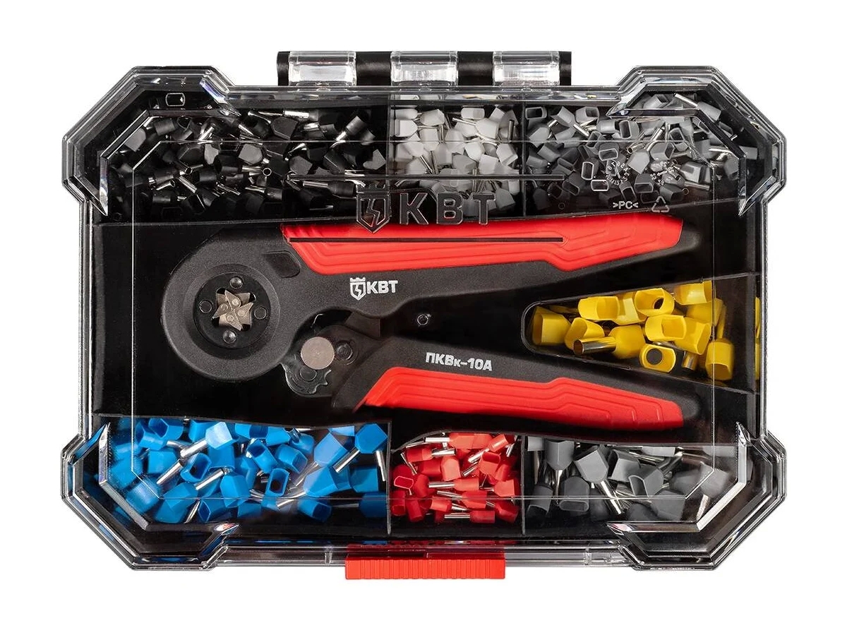 Набор содержит наиболее популярные размеры одинарных и двойных втулочных наконечников с универсальным инструментом для опрессовки втулочных наконечников.