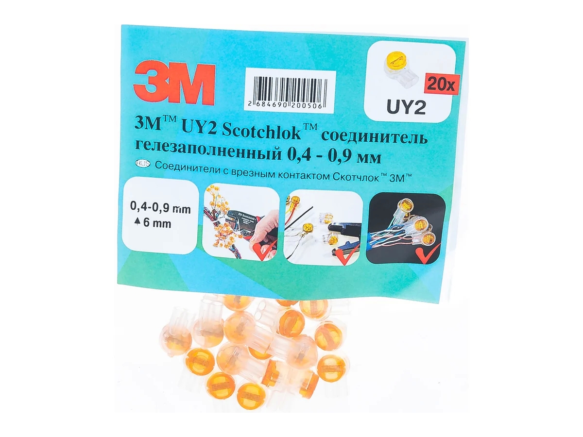 Соединитель для жил 0.4-0.9мм, 20шт 3М Scotchlok UY-2 W000031727 используется для соединения проводников. Обеспечивает надежное скрепление каждой пары благодаря введению проводника в U-образный коннектор.
