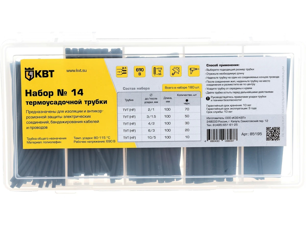 - Номинальный диаметр до/после усадки4.8/1.6; 6.4/2.1; 9.5/3.2; 12.7/4.2 мм