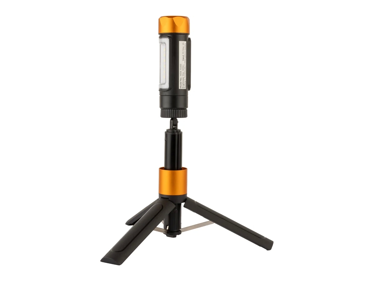 - Складная конструкция с регулируемым штативом: Оснащен удобным штативом с винтовым креплением и возможностью регулировки высоты и наклона, что позволяет устанавливать фонарь в нужном положении.