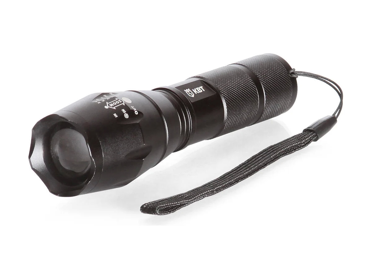 Ручной фонарик КВТ FL-8012 78259 способен работать от аккумулятора 18650 или от трех батареек типа ААА (в комплект не входят).