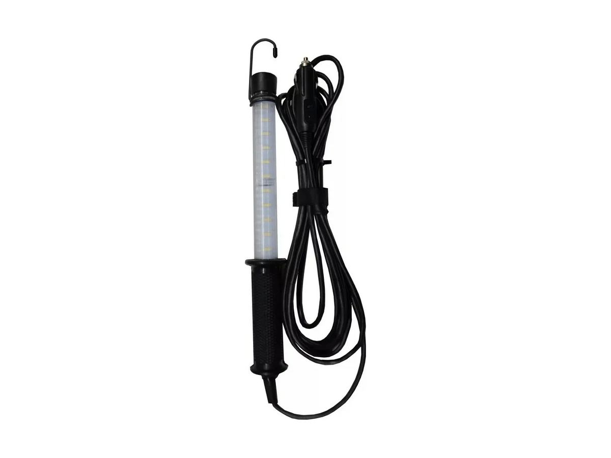 Светильник работает от сети 12В/24В, оснащен современными сверхяркими светодиодами и крюком для подвеса, который освобождает руки мастера. Долговечный и экономичный, он отличается минимальным энергопотреблением, отсутствием мерцания и нагрева при длительном использовании. Устройство работает от прикуривателя, подходит для использования не только в гараже или автосервисной мастерской, но и прямо в дороге.