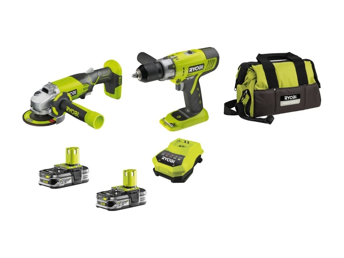 - Комплектацияударная дрель-шуруповерт; угловая шлифмашина