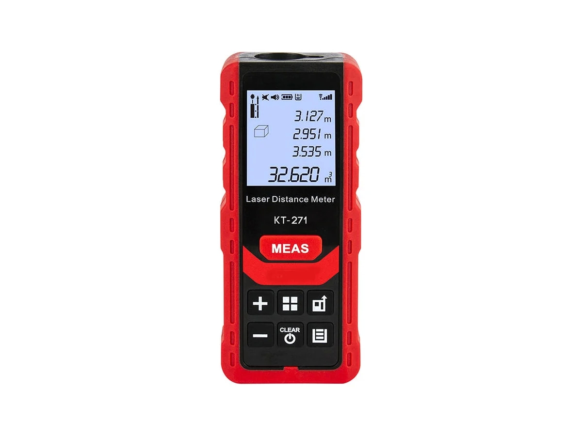 Лазерный дальномер КВТ KT 271 PROLINE 86209 предназначен определения размеров и объемов помещения для планирования объема работ, составления спецификации материалов при проектировании. Максимальная дальность измерения расстояния: 50 метров.