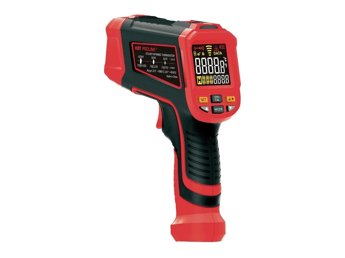 Бесконтактный цифровой пирометр КВТ KT 653 PROLINE 87246 измеряет температуры твердых и жидких тел на расстоянии и в труднодоступных местах.