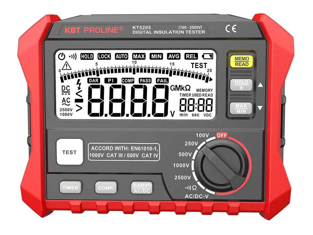 - 1000В: диапазон 0–20 МОм/20–200 МОм/0.2–2 ГОм/2–20 ГОм/20–100 Гом