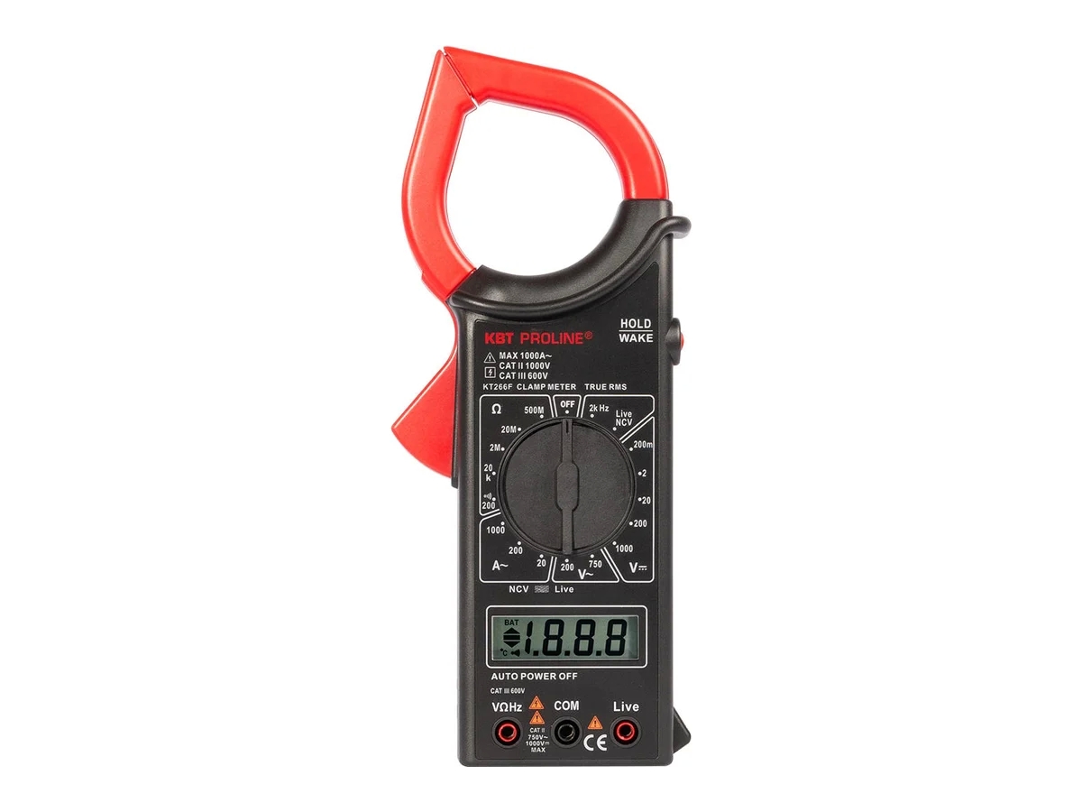 Цифровые токовые клещи КВТ KT 266F PROLINE 79133 измеряет переменный ток, напряжение и сопротивление.