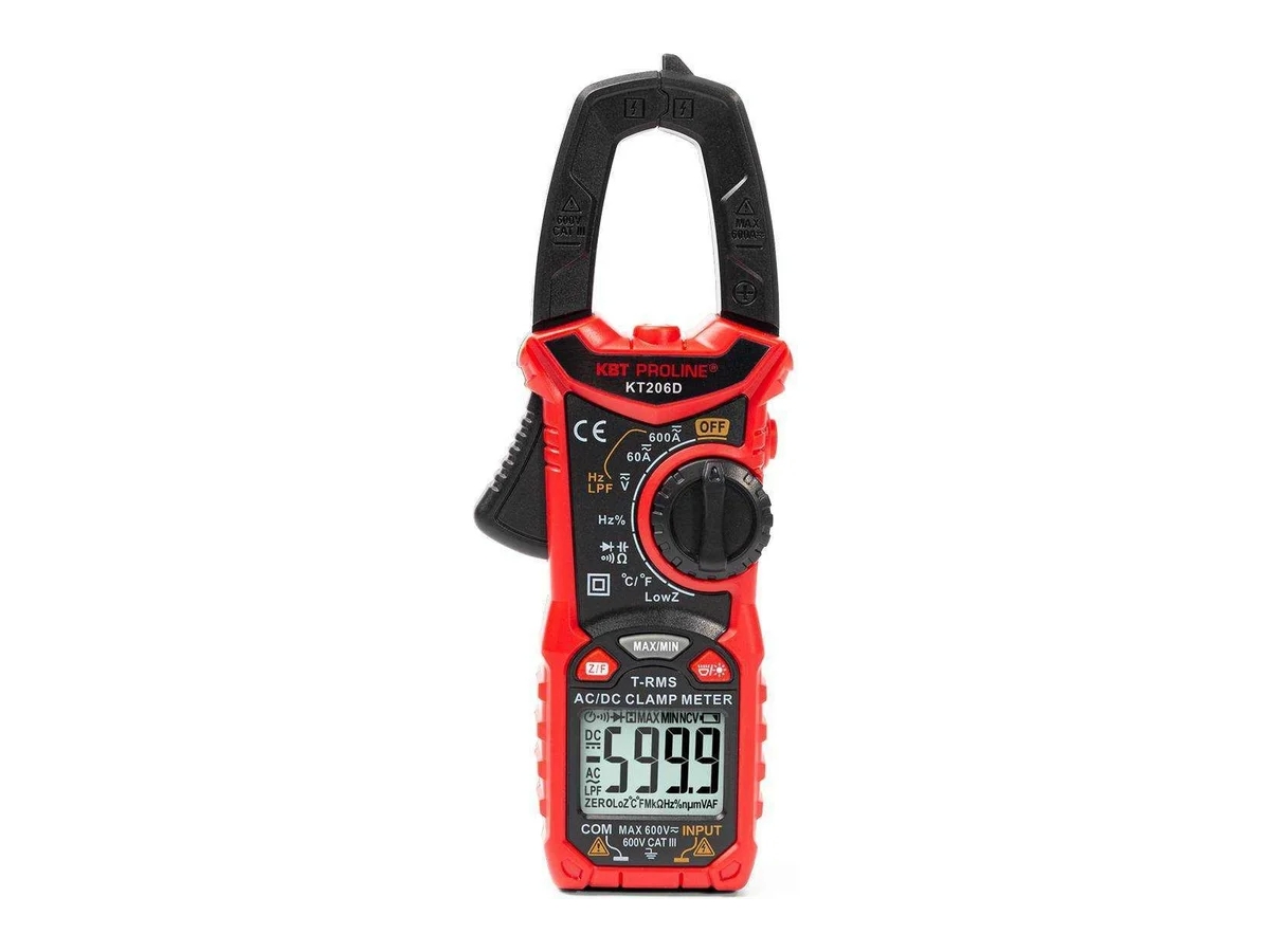 Токовые цифровые клещи КВТ KT 206D PROLINE 80753 – многофункциональные цифровые токовые клещи с функцией True RMS, автоматическим выбором пределов измерений и световой индикацией безопасности.