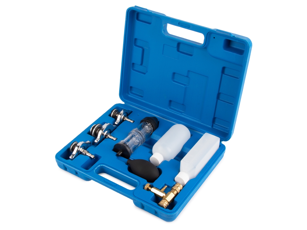 Тестер устанавливается в заливную горловину бачка охлаждающей жидкости. Отработавшие газы, попадая в систему охлаждения двигателя, накапливаются в «воздушной подушке» радиатора или расширительного бачка. Тестер анализирует состав смеси, тестовая жидкость меняет цвет с голубого на желтый, при наличии выхлопных газов в системе для бензиновых двигателей, и на зеленый, при наличии выхлопных газов в системе для дизельных двигателей. Обычный метод часто дает неправильный результат, так как присутствующие в воздухе частицы щелочи могут нейтрализовать эффект присутствия CO2, показывая что утечки нет, когда она присутствует. Эти частицы абсорбируются первой камерой тестера, которая действует как фильтр, позволяя только воздуху и CO2 достигать второй — верхней камеры. Если жидкость в верхней камере меняет цвет на желтый или зеленый, это факт свидетельствующий о наличии CO2 в антифризе и соответственно о прорыве выхлопных газов в систему охлаждения.