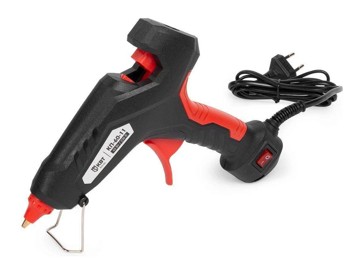 Клеевой пистолет КВТ КП-60-11 87966 предназначен для быстрого и надежного склеивания керамики, фарфора, пластика, металла, кожи, резины, дерева, картона и других материалов с помощью термоплавкого клея.