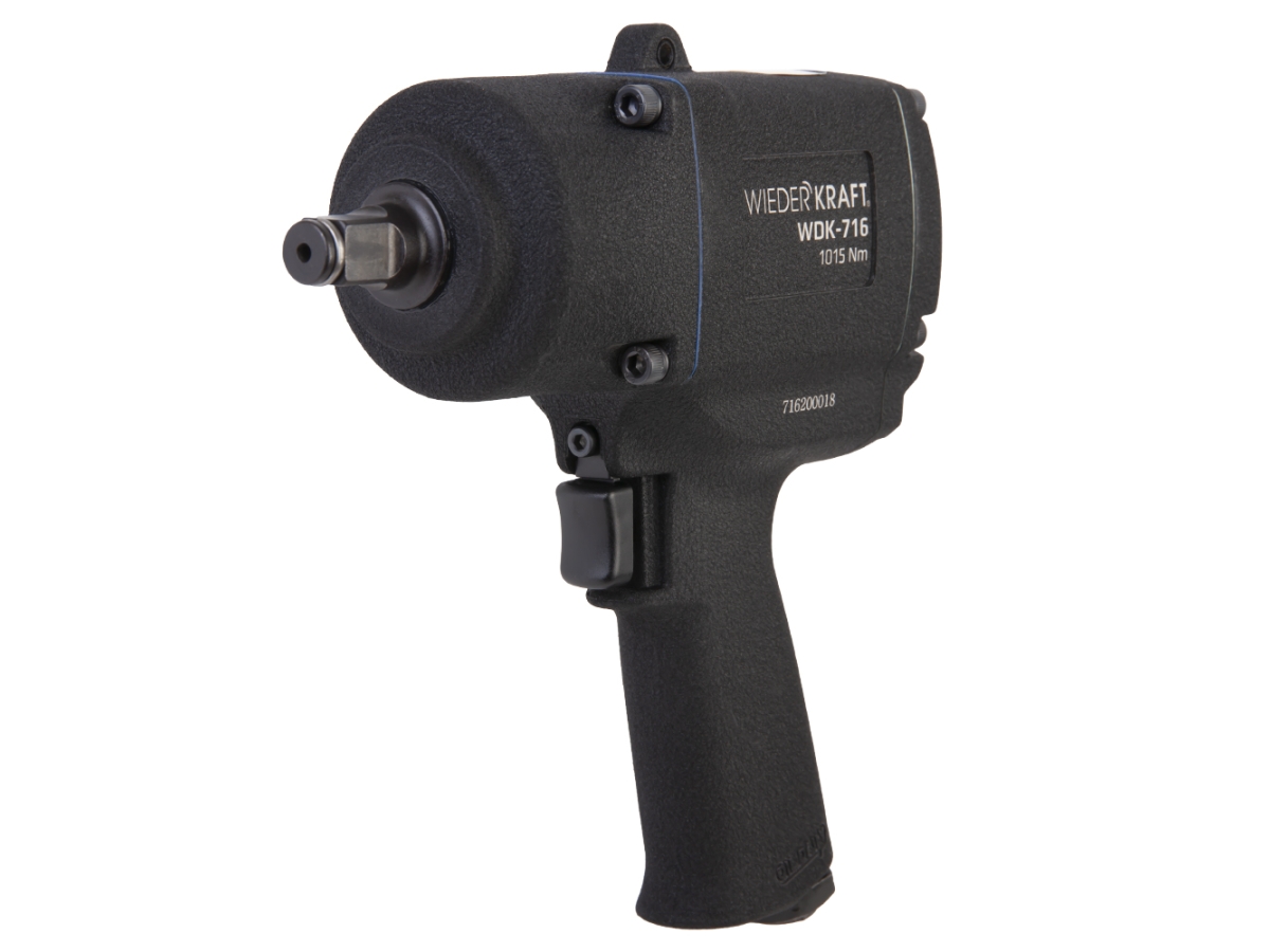 Пневматический ударный гайковерт WIEDERKRAFT WDK-716 предназначен для работы с заклинившим и прикипевшим резьбовым крепежом. Двойной ударный механизм обеспечивает крутящий момент до 1015 Нм. Подходит для интенсивных монтажных и демонтажных работ в автосервисах, шиномонтаже и промышленных условиях.