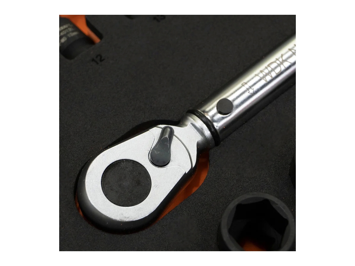 Торцевые головки 10-32 мм изготовлены из высокопрочной стали 42CrMo. Представлены в наборе в двух вариантах – обычном и глубоком. Отличаются большой износостойкостью.
