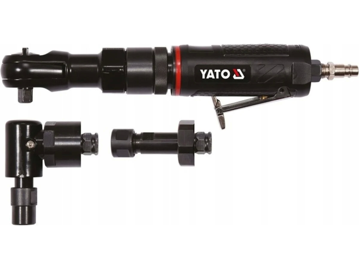 Универсальный пневматический инструмент 3-в-1 со сменными насадками сочетает в себе функции трещотки 1/2", прямошлифовальной и угловой шлифовальной машины с хвостовиком 6 мм.