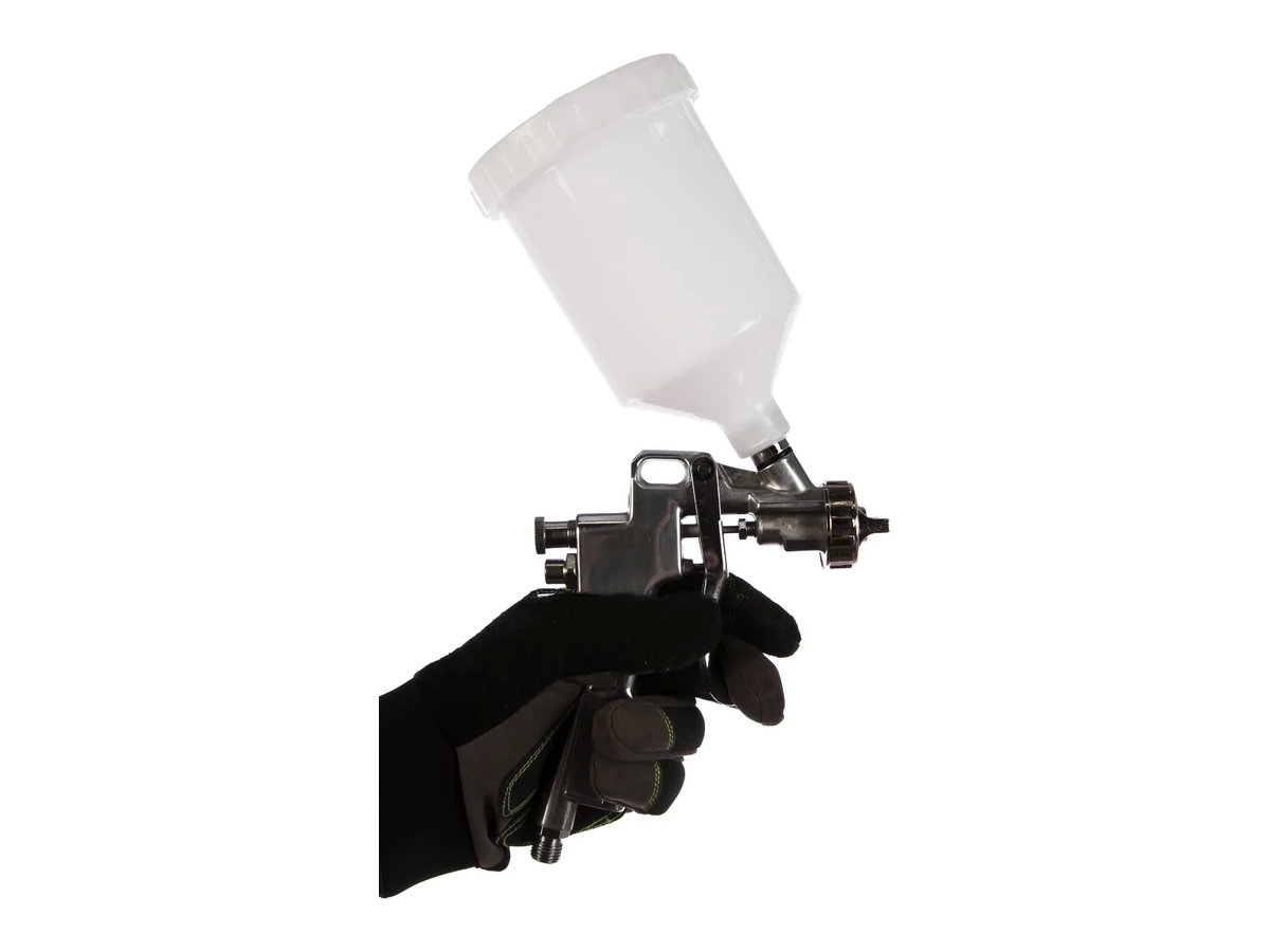 Специальный крючок позволяет хранить краскопульт в подвешенном состоянии.