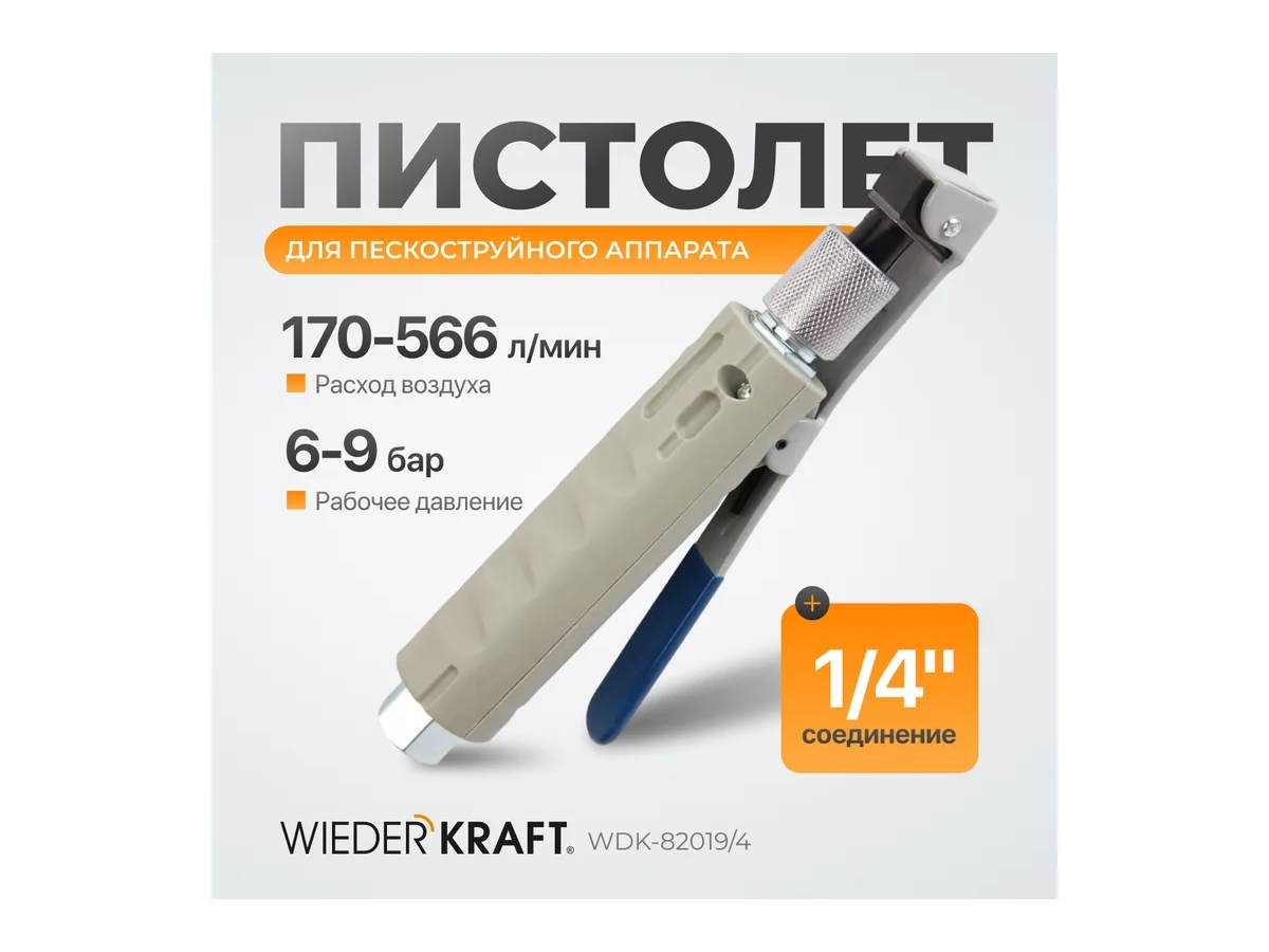 Пистолет для пескоструйного аппарата WIEDERKRAFT WDK-82019/4 предназначен для очистки поверхностей от грязи и ржавчины, а также снятия старых покрытий. Используется в связке с пескоструйными аппаратами.