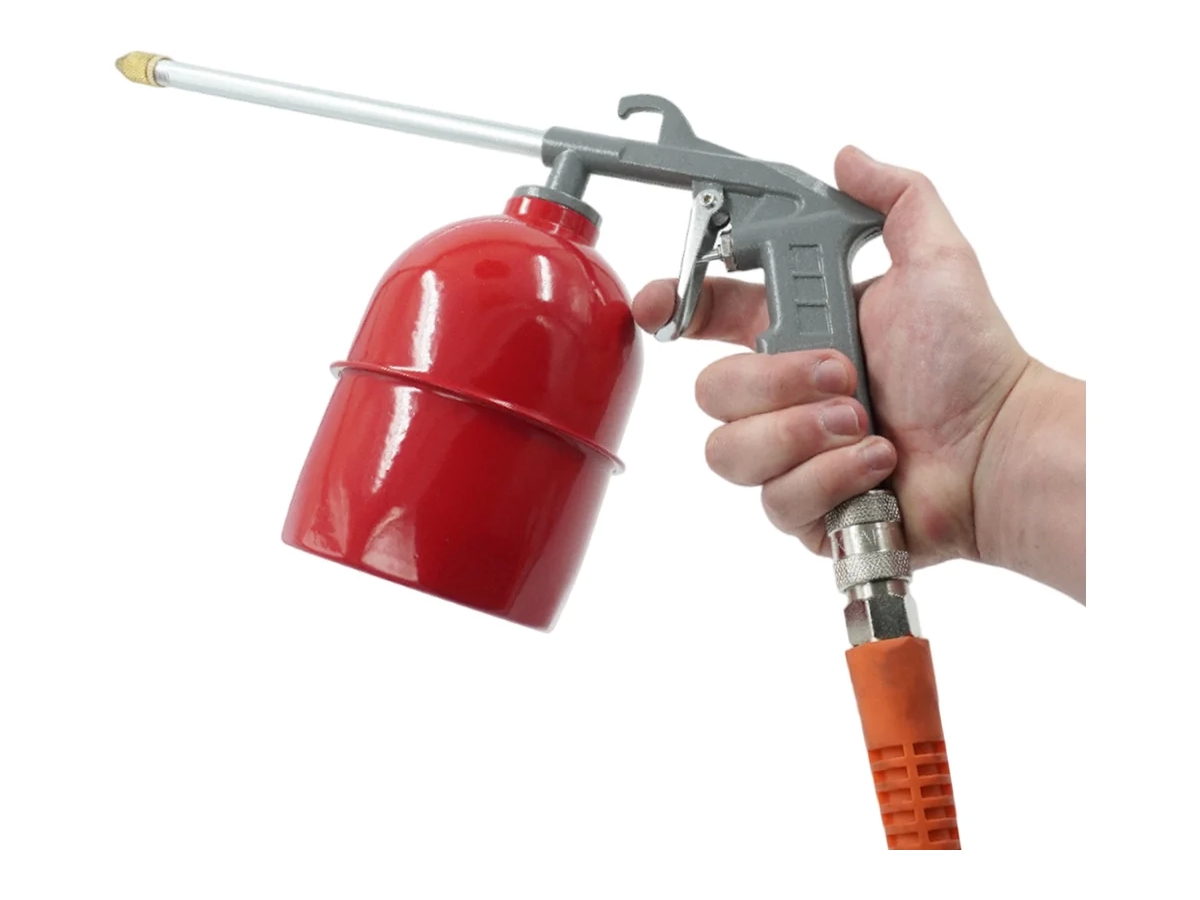 Моечный (мовильный) пневматический пистолет WDK-65169 создан для нанесения антикоррозийных средств, распыления моющих и вязких составов под высоким давлением, а также для очистки труднодоступных мест. Он идеально подходит для мойки двигателя, обработки скрытых полостей, узлов и деталей автомобилей. Регулируемое сопло позволяет настроить ширину и интенсивность струи, что делает инструмент универсальным для различных задач.