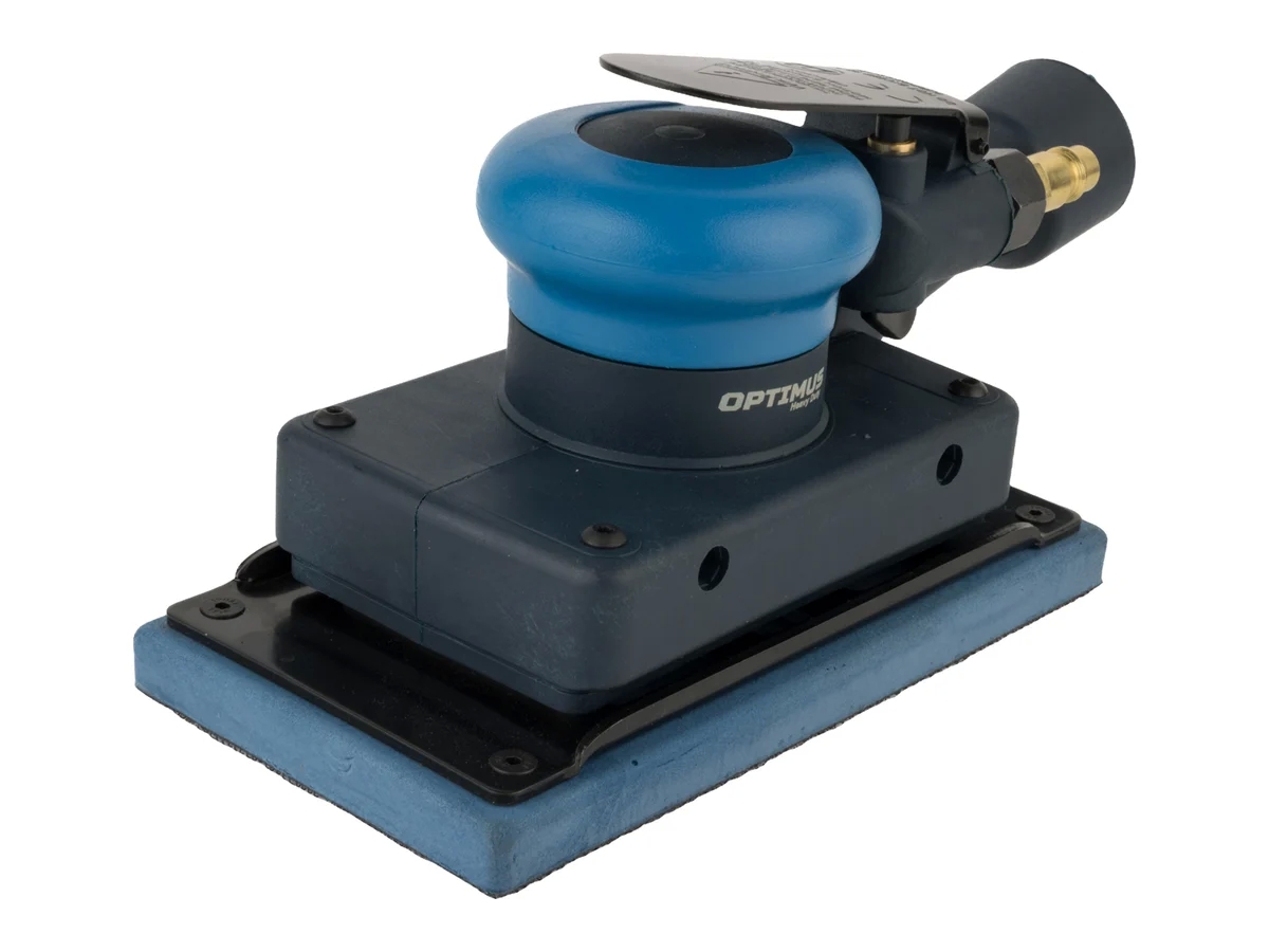 Пневматическая плоскошлифовальная машинка Optimus OPT-PS3751 обеспечивает качественное и быстрое выравнивание поверхности материалов различной плотности - пластика, металла, дерева. Оснастка крепится к подошве инструмента на липучку и легко заменяется в случае необходимости.