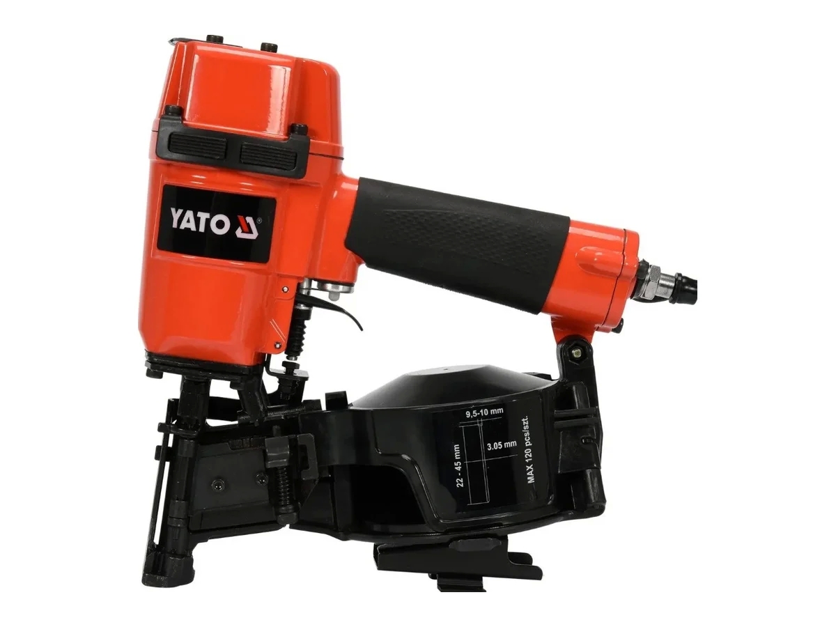 Кровельный нейлер YATO 22-45 мм YT-09211 предназначен для кровельных гвоздей длиной 22-45 мм, соединяемых проволокой под углом 15°. Толщина гвоздя ок. 3,05 мм.