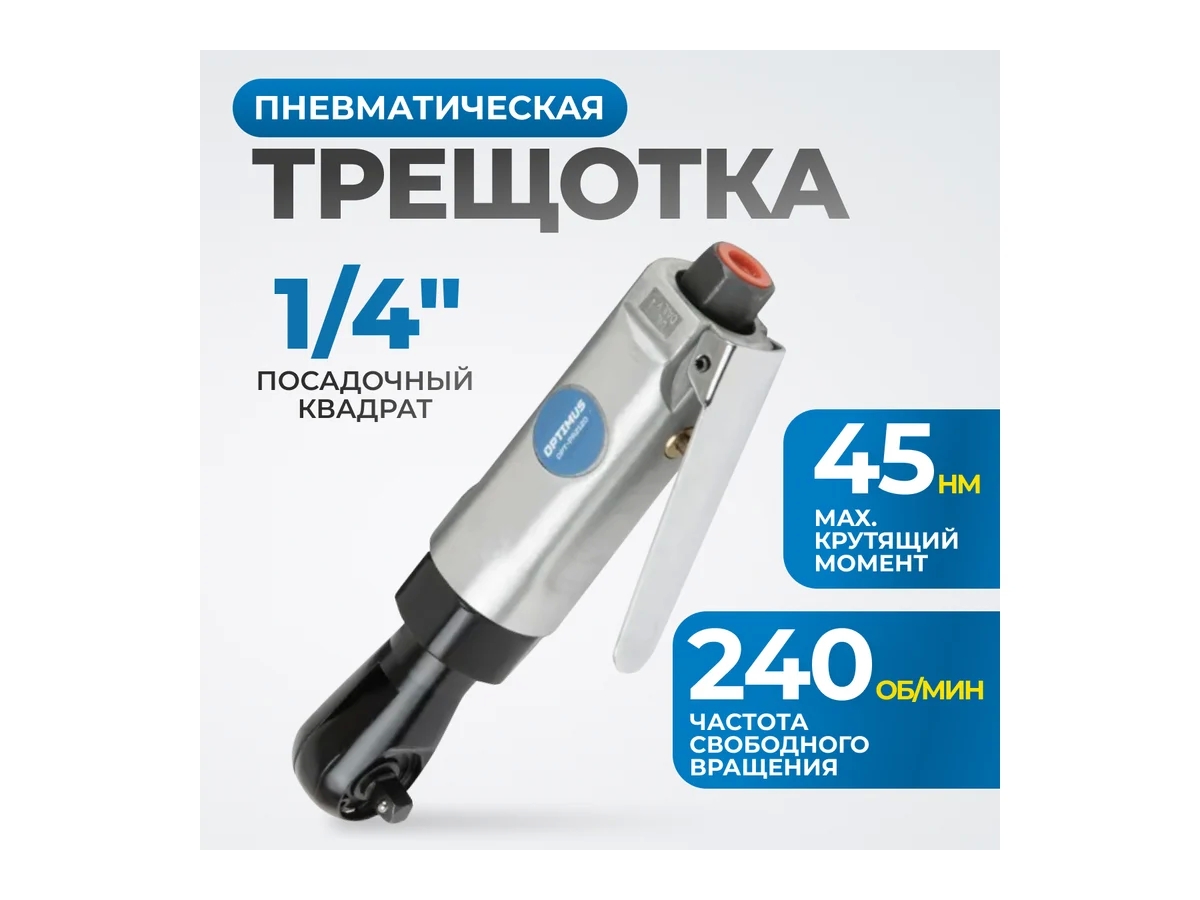 Пневматическая трещотка Optimus 1/4”, 45 Нм OPT-PR2120 применяется на производственных предприятиях, СТО, в ремонтных мастерских для быстрого закручивания и откручивания резьбовых соединений.