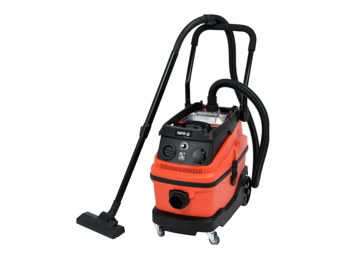 Профессиональный промышленный пылесос YATO мощностью 1600 Вт и мощностью всасывания 18 кПа. Имеет бак на 30 л. Вид работ: влажная, сухая. Оснащен функцией вентилятора.
