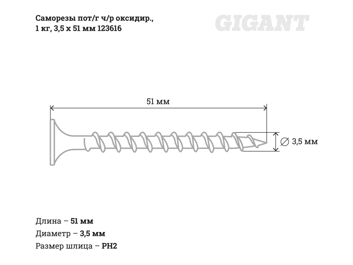 - Размер шлицаPH2