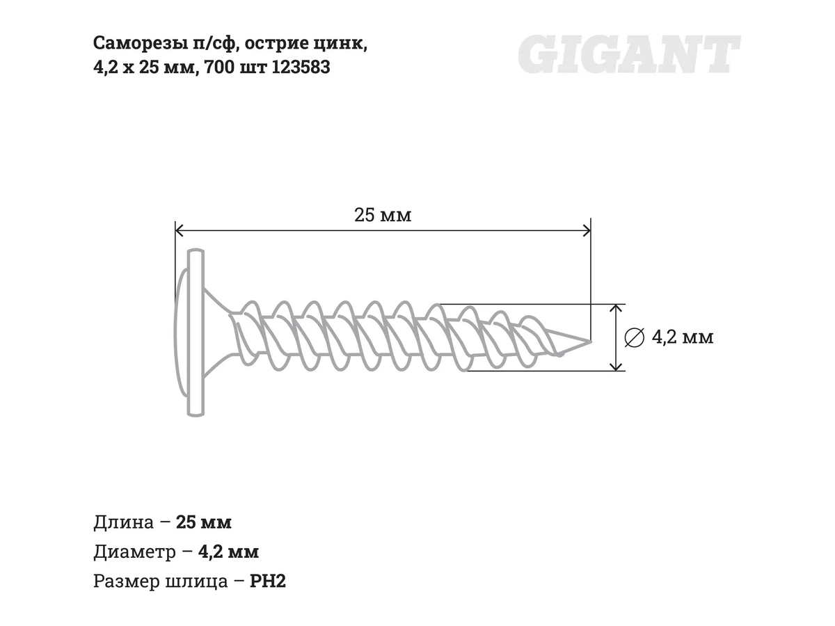 - Размер шлицаPH2