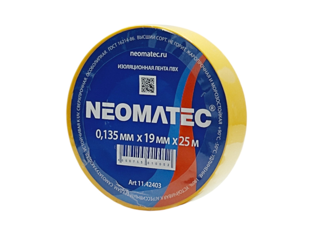 Изолента (25м х 19мм х 0,135мм) белая NEOMATEC 11.42403 представляет собой высококачественную поливинилхлоридную изоляционную ленту толщиной 0,135 мм. Универсальная электроизоляционная ПВХ-лента для общего применения. Огнестойкая лента для изоляции кабелей и проводов на низкое напряжение до 600В. Обеспечивает электрическую и механическую защиту проводов и соединений. Цветные ленты используются для маркировки. Доступна в 8 цветах и 2-х размерах. Лента обладает хорошей адгезией, высокой механической прочностью и эластичностью. Легко рвется руками.
